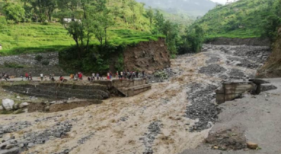 People’s mobility has been obstructed after a flood occurred at Malika Rural Municipality-7, Marangkhola in