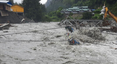 Connection with upper Manang has been disrupted as the only suspension bridge joining the area
