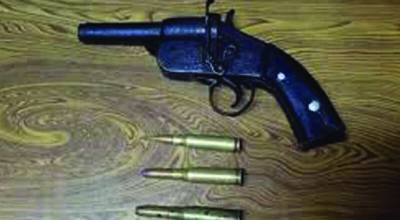 The police have arrested a man with a pistol and five live cartridges from Triyuga-12