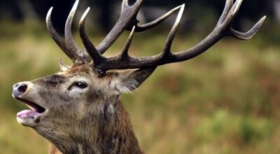 Bahrasinghe (swap deer) which was kept at the open cage in the Chitwan National Park