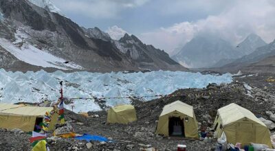 A mountaineer who reached the base camp of Mt. Everest, at an altitude of 5,364