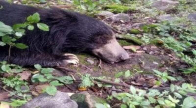 A bear was electrocuted on Monday in a forest in the Chure range of Katari