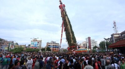 The consumer’s committee involved in the reconstruction of the historic Rato Machchhindranath temple at Bungmati