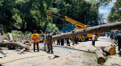 Twenty-one trees were removed from the roadside in Sallaghari of Bhaktapur following the deaths of