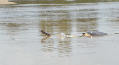 As water level rises because of the monsoon rains, rare aquatic dolphins have started appearing