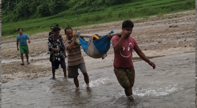 In the geographically remote Chure area of Sarlahi, people have started using stretcher to carry
