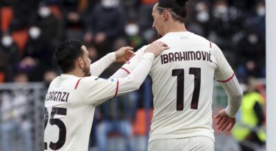 (AP) — Zlatan Ibrahimović matched a mark set by Cristiano Ronaldo and Theo Hernández scored