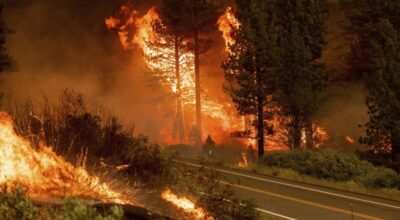 (AP) — A rapidly growing wildfire south of Lake Tahoe jumped a highway, prompting more