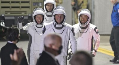 (AP) — Four astronauts arrived at their launch pad early Friday morning for a SpaceX