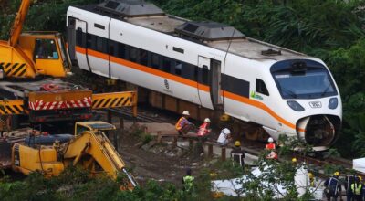 (AP) — A train partially derailed along Taiwan’s east coast Friday, injuring an unknown number