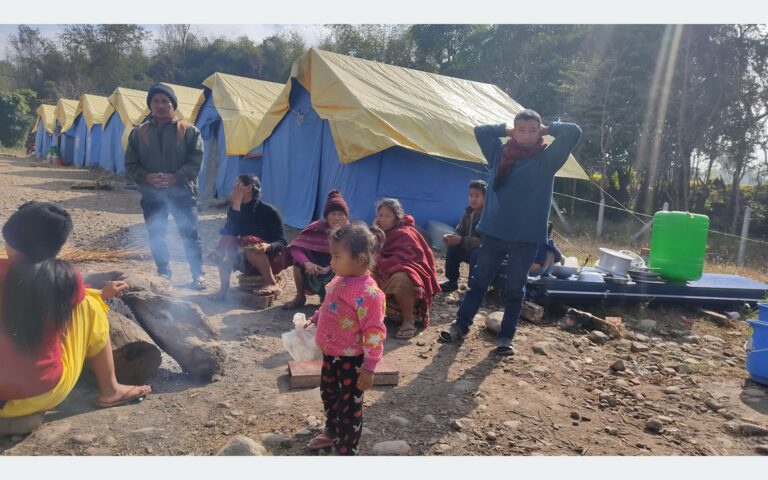 “Our house was rendered inhabitable by the landslide; the debris of landslide has broken apart the arable land and created fissures too. It has been increasingly difficult to spend the night in bone-chilling winter,” wailed Rana. Min Bahadur Somai shared that he is worried that his children would be taken ill due to biting cold in the makeshift tent.