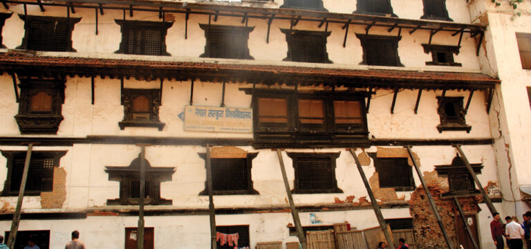 The dispute about land ownership between the Nepal Sanskrit University and Trhibhuvan University has also not been resolved, nor have they taken any imitative to rebuild the severely cracked building. The building has been an eyesore for the locals and visitors.