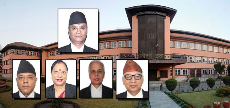 According to SC spokesperson Baburam Dahal, the hearing over writ petitions was being held in the constitutional bench comprising of Chief Justice Cholendra Shumsher JB Rana and Justices Dipak Kumar Karki, Mira Khadka, Ishwar Prasad Khatiwada, and Aananda Mohan Bhattarai.