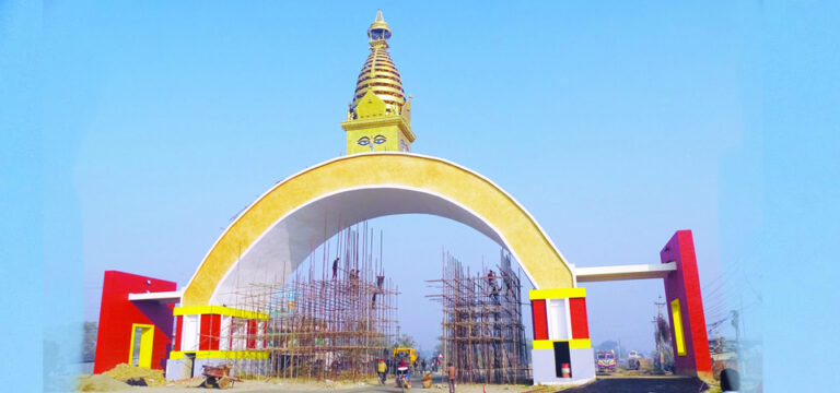 Siddharthnagar Municipality has stated that the construction of the attractive gate, which is being built at the entrance of Lumbini, the birthplace of the Buddha, has reached the final stage.
