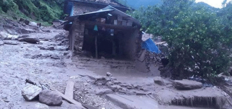 The swollen Myagdi rivulet flowing through Managala rural municipality-5 had taken away the house of Khagendra Roka. Malika-6 ward chairperson Santosh Subedi shared that the flood took away Khagendra’s son Bajin and daughter-in-law Bina when they were asleep inside the house.