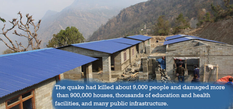 The quake had killed about 9,000 people and damaged more than 900,000 houses, thousands of education and health facilities, and many public infrastructure.