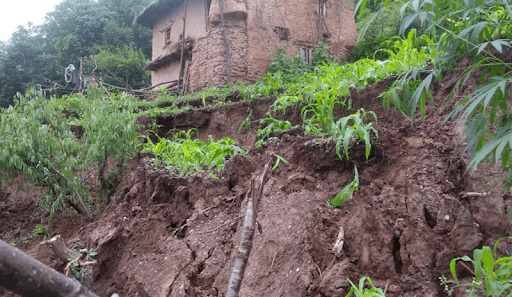 The settlement is at risk of this landslide that has occurred on a section of the Rugin-Bichchhya rural road right below the village.