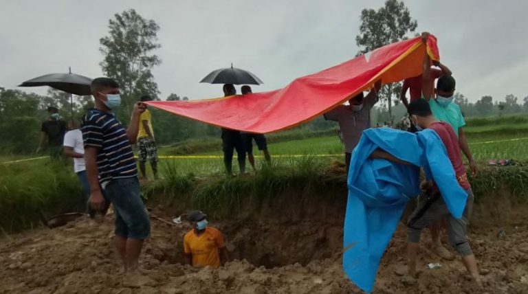 Sarlahi’s Chief District Officer Thaneshwor Gautam, Police Chief SP Prabin Pokhrel and local representatives were present while the field was dug and Nisha’s body recovered.