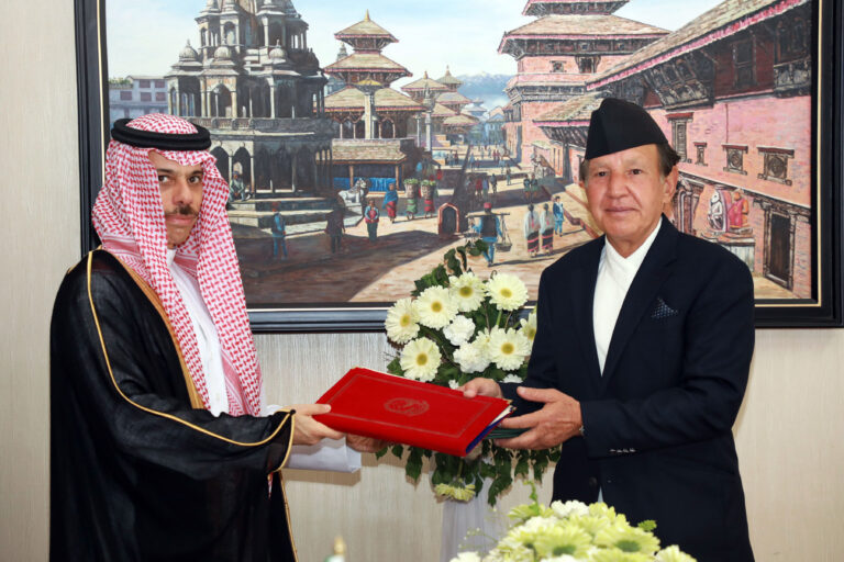 Foreign Minister Dr. Narayan Khadka and Foreign Minister of the KSA Prince Faisal bin Farhan Al Saud signed the agreement following bilateral talks between the delegation of the two countries at the Ministry of Foreign Affairs today.