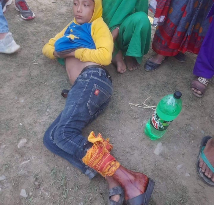 Man Kumar Shrestha, 14, has sustained injuries in his legs. He is reported to have been staying in his home when he was hit by a bullet.