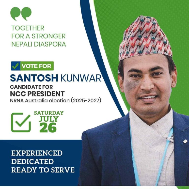 Santosh Kunwar has been elected as the President of the Non-Resident Nepali Association (NRNA) Australia. According to the election commission, Kunwar secured a total of 6,839 votes to claim victory.